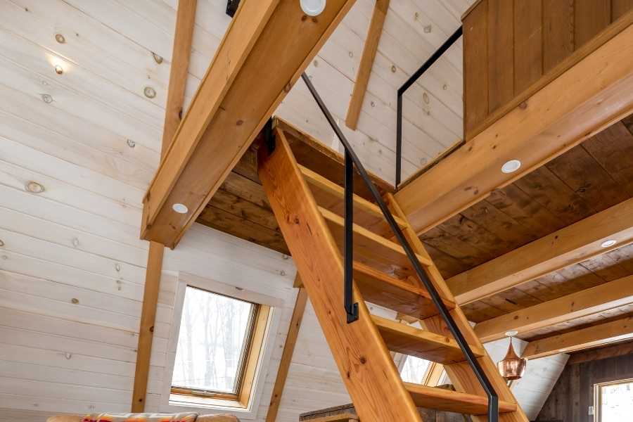 - Stauraum wird von Anfang an mitgedacht. Treppenregal, Schrank unter der Treppe und Regale werden in die Konstruktion integriert, nicht nachträglich drangebaut.