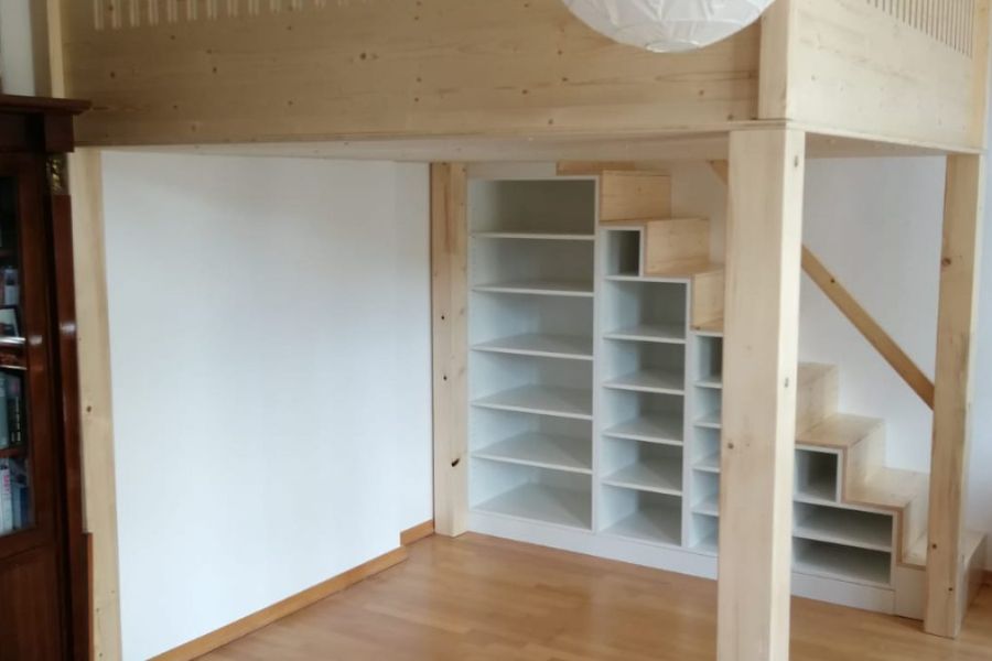 - Zweite Ebene im Zimmer für Schlafen, Arbeiten oder Stauraum Anpassung an Dachschrägen, Nischen und besondere Grundrisse